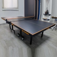 室内折叠乒乓球台的材料有多种选择,如钢铁、铝合金、中纤板,采用中纤板的乒乓球台使用效果更佳,更加耐用,不易变形。